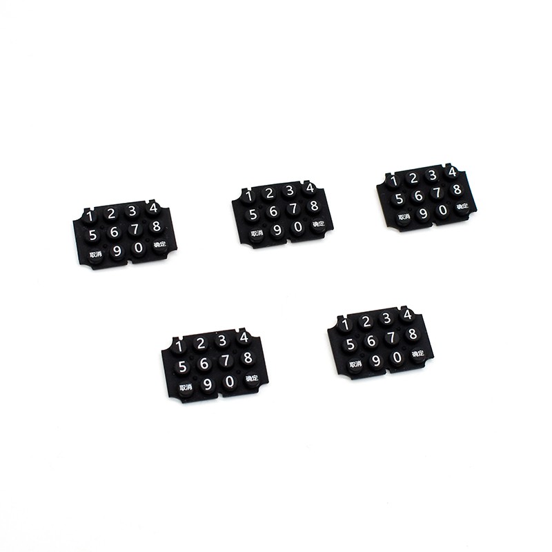 Silikon kauchuk tugma yostiqchalari ishlab chiqarish silikon mahsulotning diametri, uzunligi, kengligi va balandligi, tugmachaning harakatlanish masofasi, bosim kuchi talablari, mahsulotning qattiqligi, rangi, o'tkazuvchanlik talablari va boshqalarni hisobga olish kerak;